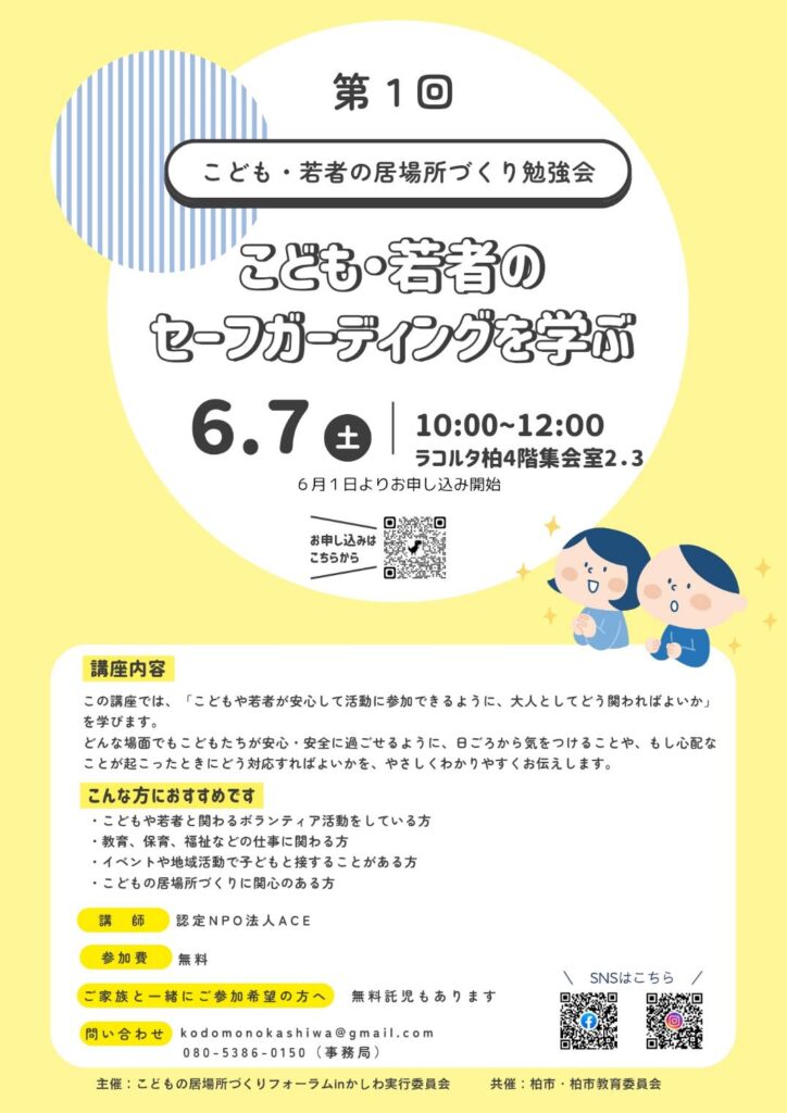 今年度は、市民の皆さんおよび、柏市、柏市教育委員会と一緒に、こどもの居場所づくりを考えていきます。引き続きよろしくお願いいたします。